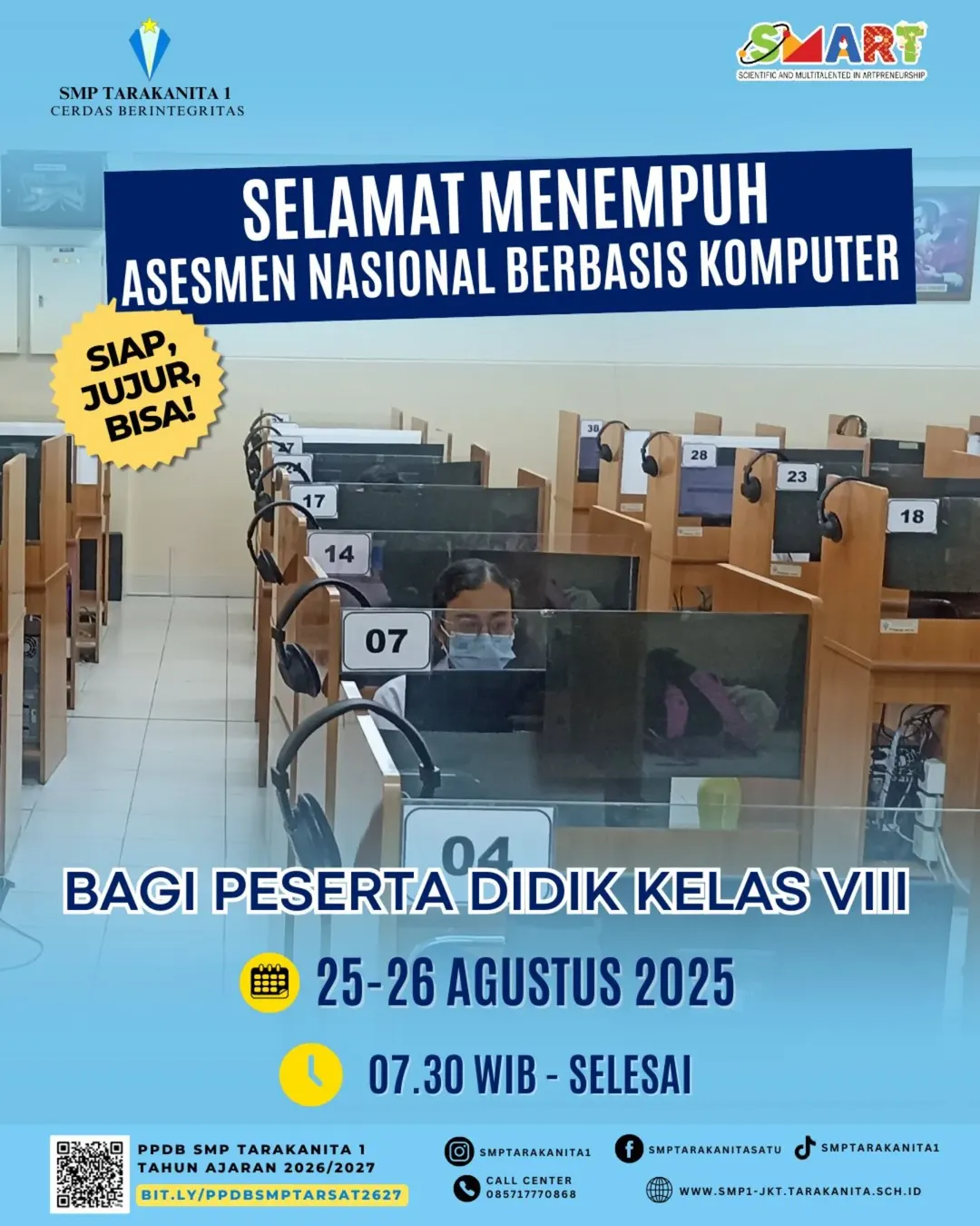 Selamat menjalani Asesmen Akhir Semester (AAS) Genap Tahun Ajaran 2022/2023 bagi peserta didik SMP Tarakanita 1 kelar 7 dan 8 ?